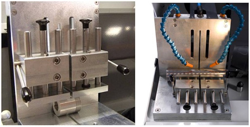 通過(guò)垂直背板,實(shí)現(xiàn)水平/垂直雙向夾持,適合不同樣品形狀切割方向要求。